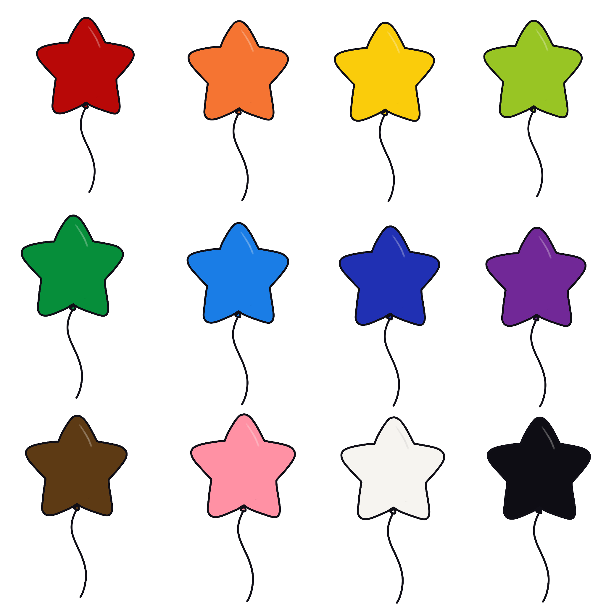 赤 オレンジ 黄 黄緑(きみどり) 緑 水色 青 紫 茶 ピンク(桃) 黒 白 カラフル カラーバリエーション
