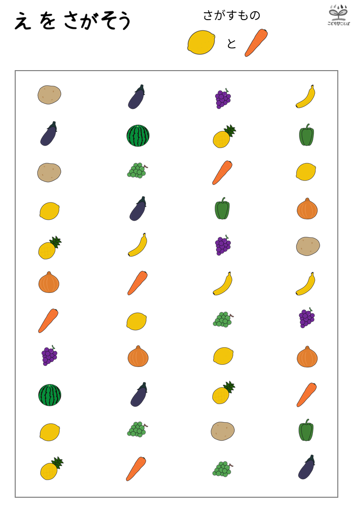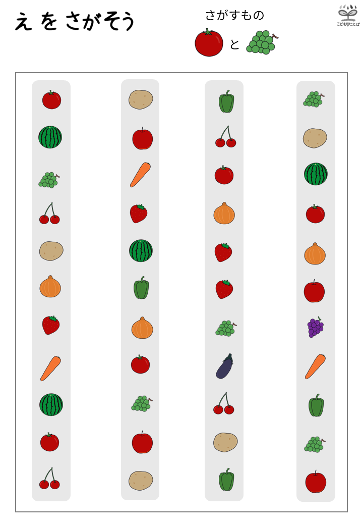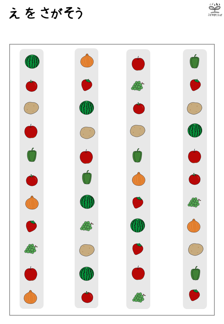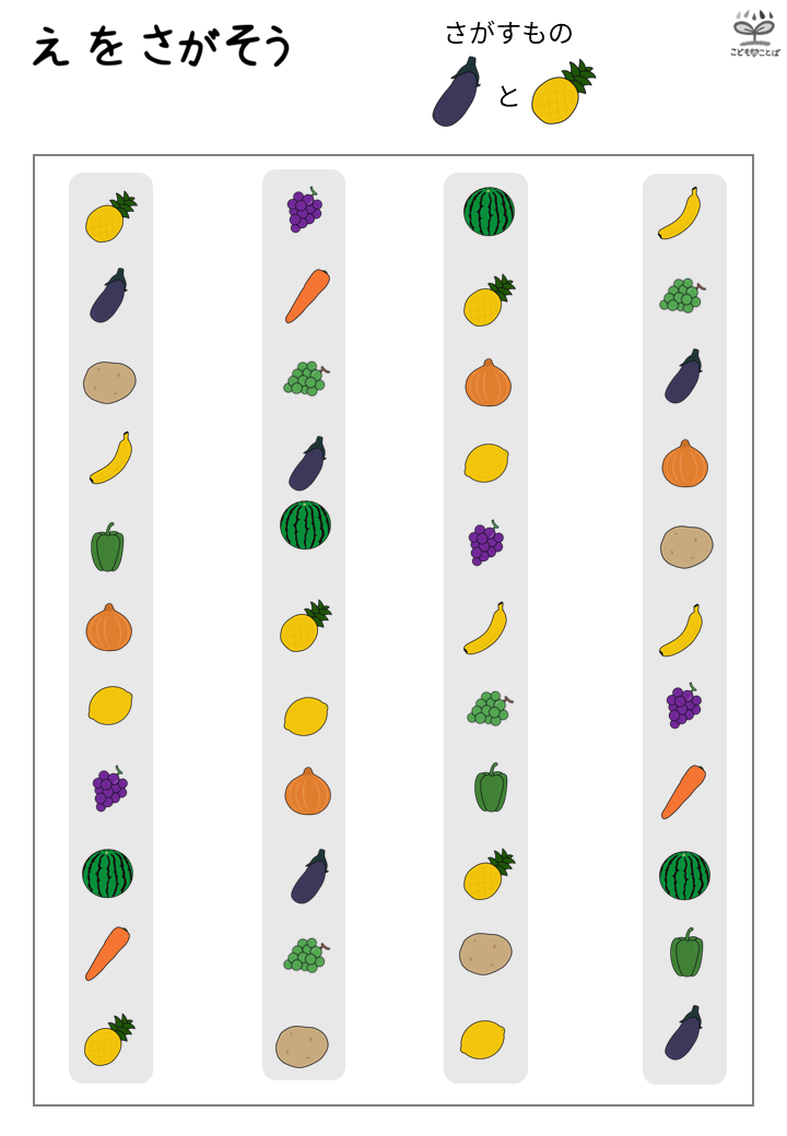 絵探し(整列)横長バージョンはこちら 👉プリント教材│絵探し(整列・横)